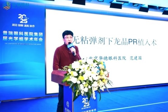 北京华德眼科医院范建国院长带来了《无粘弹剂龙晶PR水下植入临床体会》,重点探讨了晶体植入的关键时机和手法。